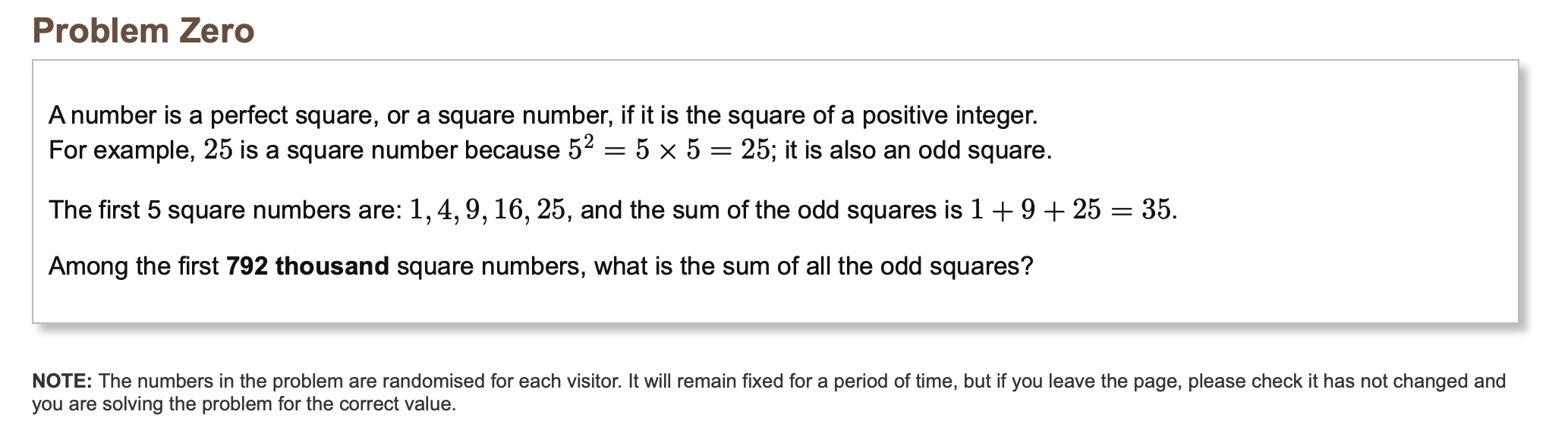 But something seemed to have changed since I last attempted Project Euler. Now there’s a “Problem Zero,” a problem it turned out, that was quite tricky for me to do on the 6502.